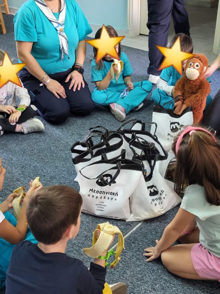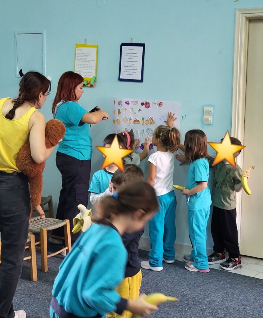 Ο χώρος γέμισε χαμόγελα, παιδικές φωνές και χρώματα, καθώς ο ντροπαλός μας μαϊμουδάκος, ο Μπανανής 🍌🐵, βοήθησε τα παιδιά να ανακαλύψουν – με τον δικό του παιχνιδιάρικο τρόπο – ένα από τα μυστικά της υγιεινής διατροφής.